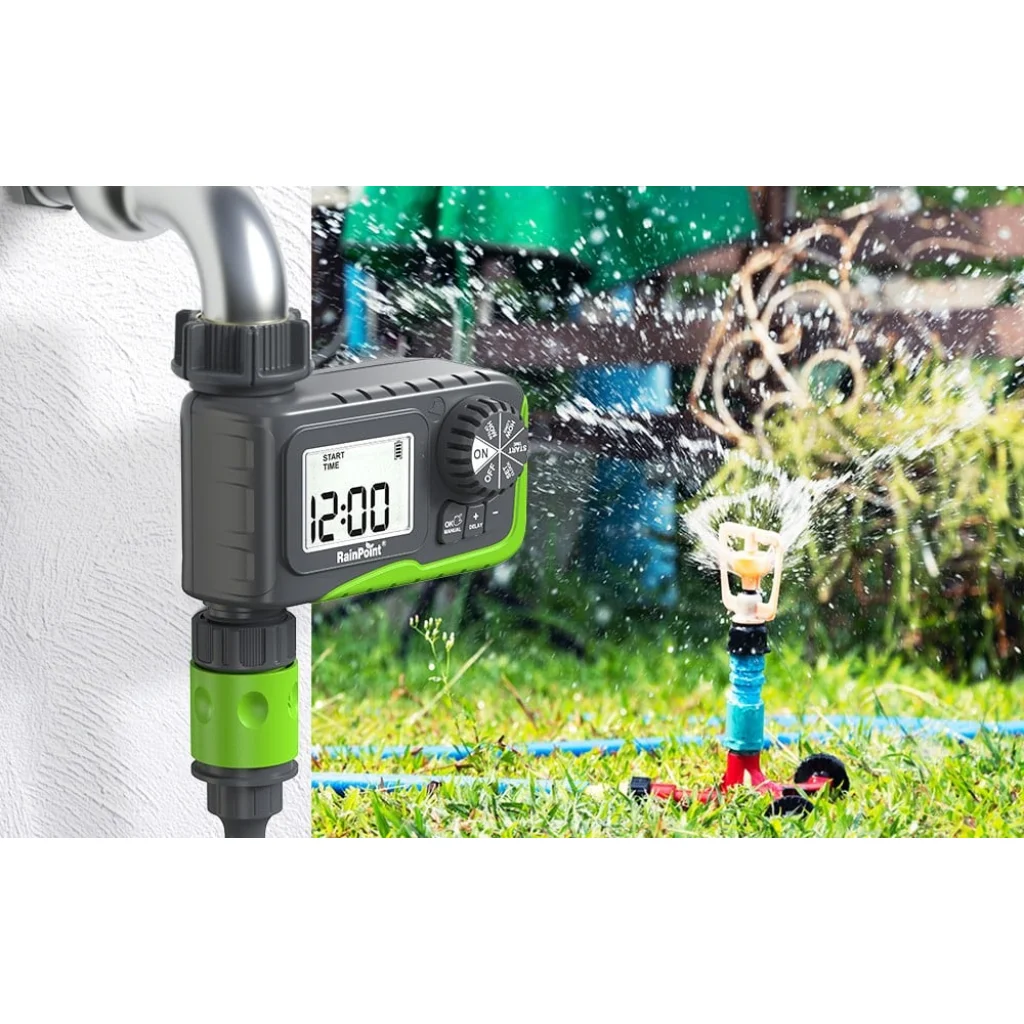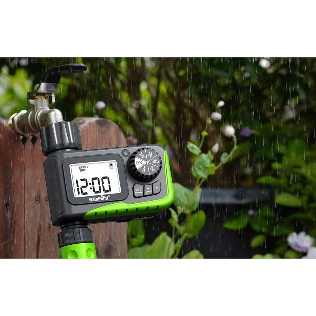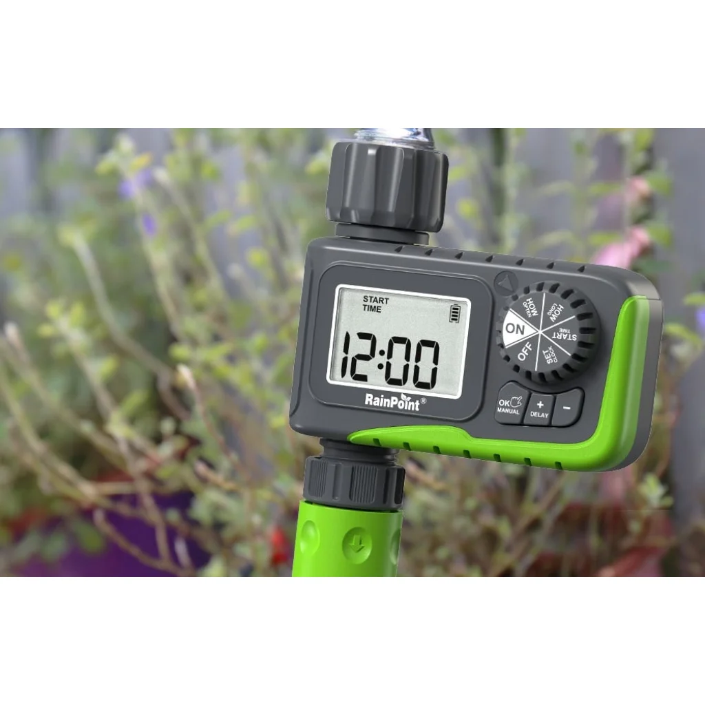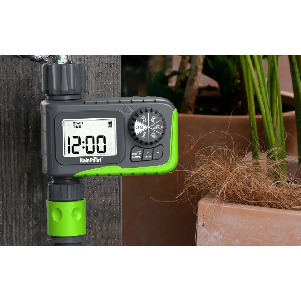 A RainPoint ITV105 1 zónás öntözésvezérlő időzítővel forradalmasíthatja kertje öntözését. Ez a precíziós eszköz automatizálja a vízellátást, így Önnek több ideje marad a pihenésre vagy a kertjének élvezetére, miközben növényei mindig a megfelelő mennyiségű vizet kapják. A nagyméretű kijelző és az intuitív kezelőszervek gyerekjátékká teszik a programozást, míg a robusztus kialakítás garantálja a hosszú távú megbízhatóságot a kerti környezetben.