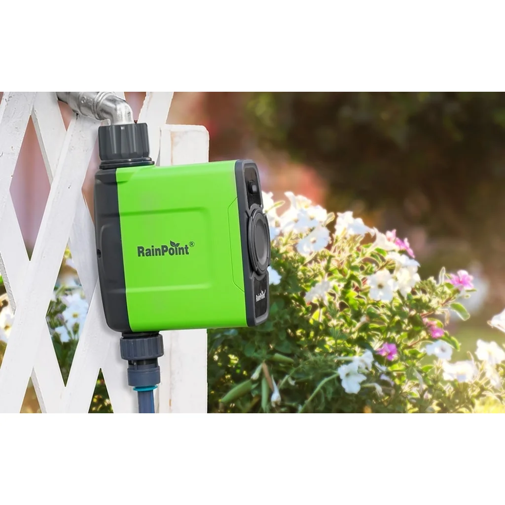 Vegye át kertje öntözésének teljes irányítását a RainPoint 1-zónás öntözésvezérlővel, amely beépített Wi-Fi modullal és kapuval (átjáróval) rendelkezik. Ez a fejlett rendszer nem csupán egyszerűsíti, de optimalizálja is az öntözési folyamatokat, garantálva a növények egészségét és a vízfogyasztás hatékonyságát. Kompatibilis a RainPoint Home alkalmazással, valamint a Google Assistant és Amazon Alexa hangalapú asszisztensekkel, így a kertgondozás sosem volt még ilyen kényelmes.