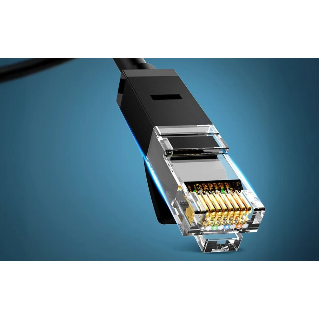 Ugreen NW102 Cat.6 RJ45 kábel, 20 m, lapos (fekete) Az Ugreen NW102 kábel praktikus megoldás stabil és gyors hálózati kapcsolat létrehozásához otthon vagy az irodában. Akár 1000 Mbps adatátviteli sebességet biztosít, így ideális távoli munkavégzéshez, online játékokhoz és nagyfelbontású filmek megtekintéséhez. Klasszikus, szilárdan megépített fekete kábel, amely könnyen illeszkedik a legtöbb belső térbe és berendezésbe.