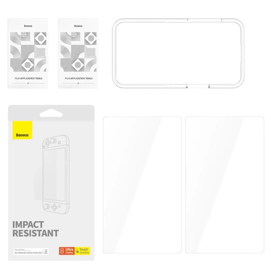 2x Baseus Crystal edzett üveg Nintendo Switch OLED 2021 + felszerelő készlet - átlátszó. A Baseus üveg jó minőségéről és kivitelezéséről ismert. Tartós edzett üveg, amely ujjlenyomat-ellenálló bevonattal rendelkezik. Az üveg felszerelése nem befolyásolja a képet - a kiegészítő teljesen átlátszó. A készlet tartalmaz egy szerelőkeretet, amely segít az üveget pontosan a kijelzőre igazítani. Telepítése csak pillanatokba telik, és nem igényel különösebb tapasztalatot. A termék megvédi készülékét a sérülésektől, karcolásoktól és repedésektől, ami hosszabb használati időt eredményez. Specifikáció: