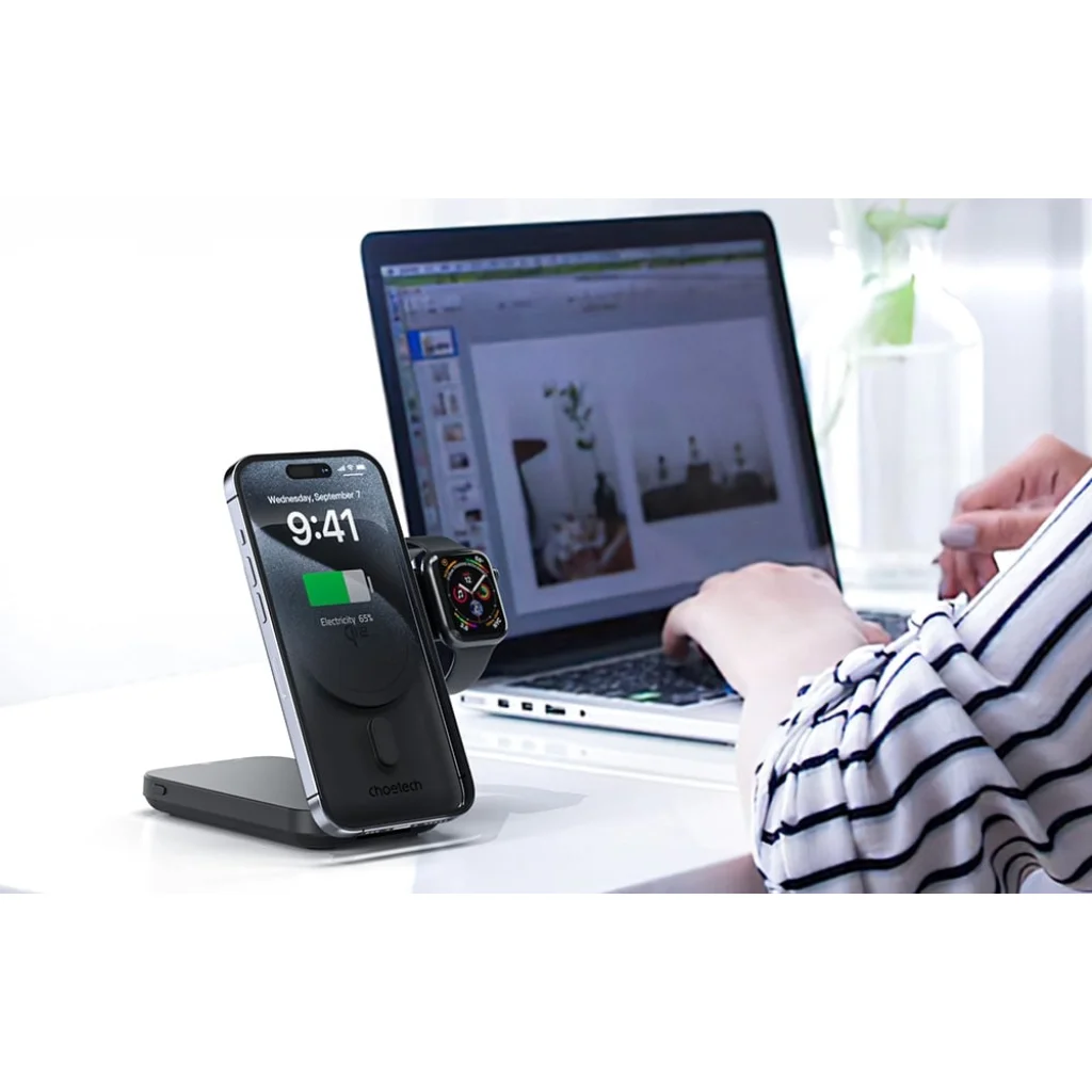 A Choetech B750 mágneses töltő kombinálja a gyors vezetékes és vezeték nélküli töltés funkcióját egy 10000mAh kapacitású powerbankkal. A Qi2 szabvány és a PD 20W és QC 3.0 protokollok támogatásával biztosítja a kompatibilis eszközök gyors, kényelmes és biztonságos töltését. Összecsukható kialakításával és mágneses rögzítésével ideális választás mindennapi használatra és utazáshoz is.