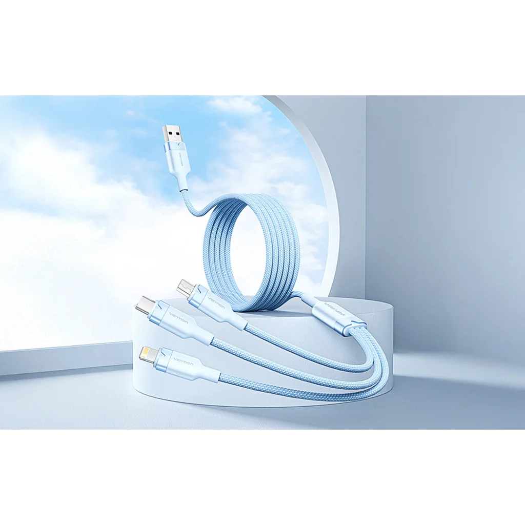 Az USB 2.0 A - 3 az 1-ben 3A Vention CTPLG 1,5M kábel egy sokoldalú megoldás, amely lehetővé teszi, hogy különböző eszközöket töltsön és szinkronizáljon egyetlen kábellel. Három különböző csatlakozóval - Lightning, USB-C és Micro-B - felszerelve tökéletes lesz a modern okostelefonok, valamint a régebbi eszközök, például powerbankok és fényképezőgépek töltésére.