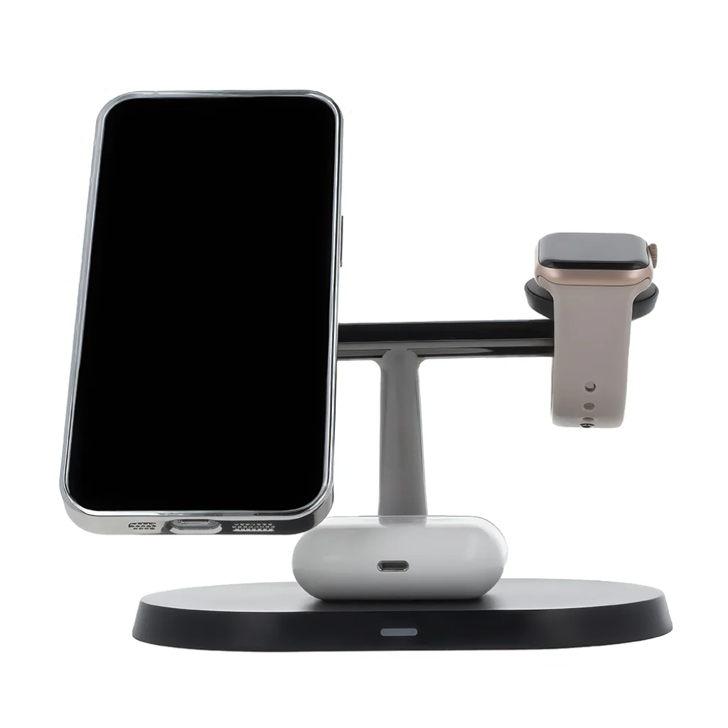 A 15W maximális teljesítményű töltőállomás gyors és stabil energiaellátást biztosít a telefonod számára, míg az Apple Watch és az AirPods is optimális sebességgel töltődik. Nincs többé szükség a megfelelő kábel vagy dugó keresésére; egyszerűen csak helyezd az eszközöket a töltőfelületekre, és máris elkezdődik az energiapótlás.