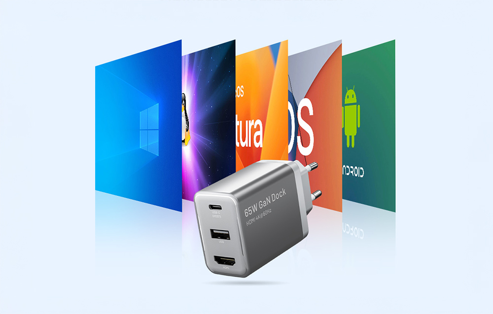HDMI portjának köszönhetően a Vention FJAH0-EU töltő lehetővé teszi egy külső kijelző csatlakoztatását, és akár 4K felbontást is elérhetsz 60Hz-en. Ez nélkülözhetetlen megoldás olyan szakemberek számára, akiknek szükségük van a képernyőjük nagyítására és a produktivitásuk maximalizálására. Legyen szó grafikai tervezési projektekről, programozásról vagy élő streamingről, ez a töltő megfelel az elvárásaidnak.
