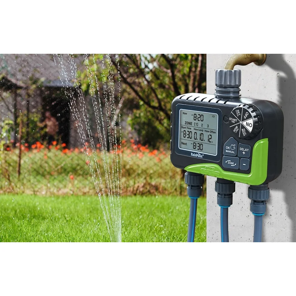 A RainPoint ITV305 az egyedülálló három zónás kialakításával kiemelkedik a piacon. Ez azt jelenti, hogy három különálló területet öntözhet, mindegyikhez egyedi programot beállítva. Akár gyepről, virágágyásról, zöldségeskertről, vagy éppen frissen ültetett palántákról van szó, minden növénytípushoz testre szabhatja az öntözés kezdési időpontját, időtartamát (1 perctől 4 óráig) és gyakoriságát (1-12 óránként vagy 1-7 naponta). Ez a rugalmasság garantálja, hogy minden növény pont annyi vizet kapjon, amennyire szüksége van, maximalizálva ezzel a vízfogyasztás hatékonyságát és növényei egészségét.