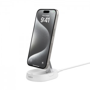 - Intuitív elrendezés: A telefon töltőfelülete döntött állásban, mágnesesen rögzítve tartja készülékét, így töltés közben is könnyedén használhatja. Emellett külön dedikált helyet biztosít az iWatch-nak és a fülhallgatónak is.