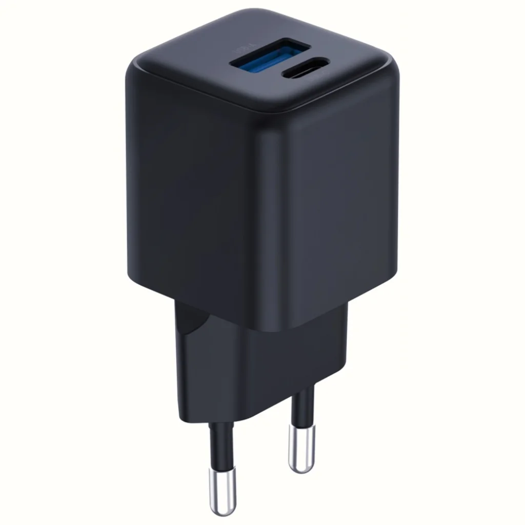 A GaN technológiának köszönhetően a töltő mérete közelebb áll egy 1 eurós érméhez, mint egy hagyományos fali töltőhöz. Könnyen befér akár egy kabátzsebbe, akár egy kis hátizsák rekeszébe, így bárhová magával viheti. Két USB porttal (1x USB-A és 1x USB-C) rendelkezik, amelyek lehetővé teszik két hordozható eszköz egyidejű töltését.