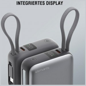 A 4smarts Pocket Dual Cord powerbank kompakt és rendkívül hatékony energiaforrás, amely tökéletes a mindennapi használatra és utazásra. 10000 mAh kapacitással többszöri töltést tesz lehetővé az okostelefonok, vezeték nélküli fülhallgatók vagy okosórák számára, és a 22.5 W-os gyorstöltési technológia gyorsan feltölti az eszközöket. A beépített 15 cm-es USB-C kábel nagy előnye ennek a modellnek, mivel nincs szükség külön kábelre, minden mindig kéznél van. Emellett a powerbank egy USB-A és egy USB-C porttal is rendelkezik, lehetővé téve két eszköz egyidejű töltését. A 4smarts Pocket Dual Cord powerbank támogatja a legnépszerűbb gyorstöltési protokollokat, mint például a Power Delivery (PD), Quick Charge (QC 3.0), Huawei SCP/FCP, és Samsung AFC, így a legtöbb piacon elérhető mobil eszközzel kompatibilis. A digitális LED kijelző pontosan tájékoztat az akkumulátor szintjéről, és a fejlett védelmi rendszer megóv a túlmelegedéstől, túlterheléstől, rövidzárlattól és túlzott kisütéstől. A kompakt és könnyű kialakítás, valamint az elegáns szürke szín (Space Grey) jól mutat, és könnyen elfér a zsebben, hátizsákban vagy táskában. A tartós ABS és PC anyagból készült burkolat biztosítja a károsodás ellenállását és modern megjelenést. A 4smarts Pocket Dual Cord 10000mAh 22.5W powerbank tökéletes választás azoknak, akik értékelik a funkcionalitást, mobilitást és megbízhatóságot. Biztosítja, hogy eszközeid mindig teljesen fel legyenek töltve - munka közben, utazáskor és mindennapi használat során egyaránt. A powerbank egyszerre kínál teljesítményt, kényelmet és stílust, nyugalmat és energiát adva, amikor a legnagyobb szükséged van rá.