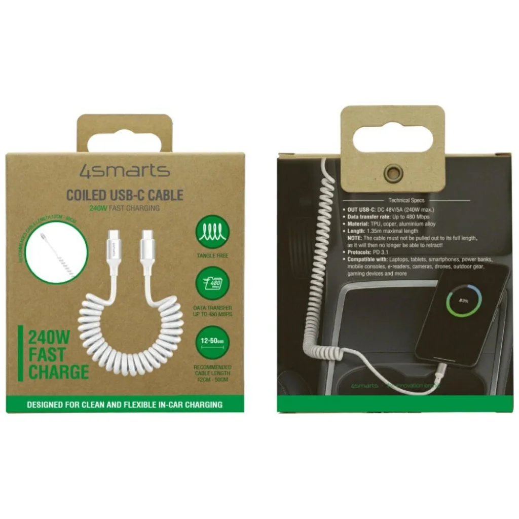 4smarts spirális USB-C - USB-C kábel 240W fehér