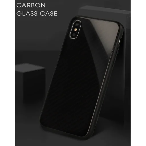 9H üveghátlapú tok szénszál mintával Huawei Mate 20 Lite fekete