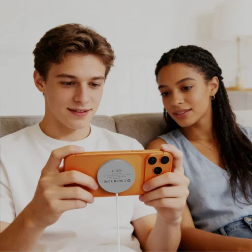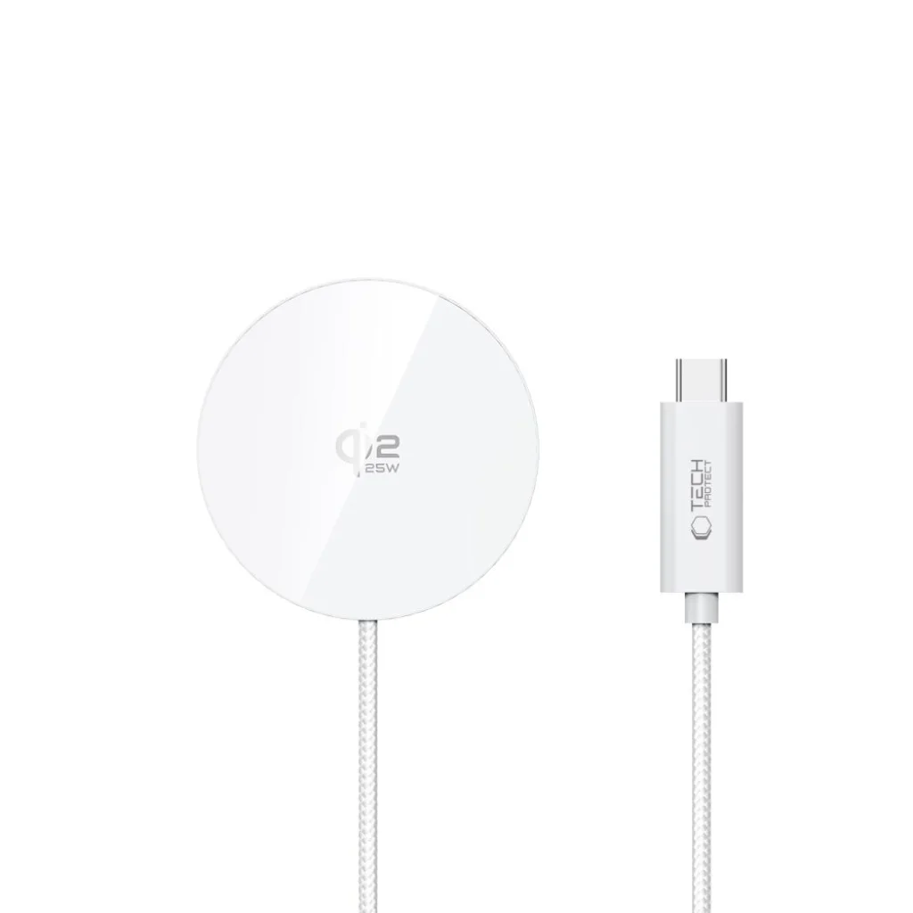A Tech-Protect A50 egy kompakt indukciós töltő mágneses MagSafe rögzítéssel, amely támogatja a legújabb Qi2.2 szabványt, legfeljebb 25W teljesítménnyel. A beépített mágneseknek köszönhetően a töltő mindig pontosan illeszkedik a telefonhoz, stabil kapcsolatot és optimális töltési teljesítményt biztosítva anélkül, hogy hosszadalmasan kellene igazgatni az eszközt. A Qi2.2 szabvány teljes kompatibilitást garantál széles körű eszközökkel – MagSafe-et támogató okostelefonokkal, szabványos Qi vezeték nélküli töltőkkel, valamint gyors töltés funkcióval rendelkező modellekkel (7,5W az iPhone-hoz) és 10–15W teljesítménnyel. A 25W teljesítmény a legmagasabb Qi2.2 profilt támogató eszközök számára elérhető, ami jelentősen rövidebb töltési időt eredményez a szokásos vezeték nélküli töltőkhöz képest. A lapos, elegáns korong esztétikusan néz ki mind az íróasztalon, mind az éjjeliszekrényen. A mellékelt fonott kialakítású USB-C kábel tartósságot és rugalmasságot biztosít a többszöri hajlításhoz. A Tech-Protect A50 ideális megoldás azok számára, akik gyors, kényelmes vezeték nélküli töltést szeretnének használni felesleges kábelek nélkül a telefon mellett. A töltő tápellátásához minimum 30W teljesítményű tápegység szükséges (külön megvásárolható).