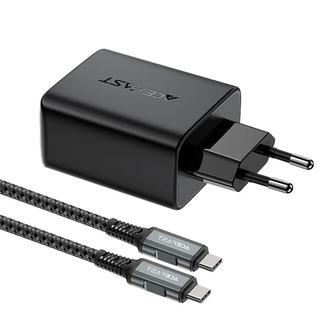 Acefast 2 az 1-ben gyorstöltő. C-típusú USB porttal rendelkezik, amely maximum 65 W-os töltést tesz lehetővé, és egy USB 5 W-os porttal. Az UBS Type C csatlakozó olyan laptopok táplálására használható, amelyek működéséhez akár 65 W teljesítményre van szükség (ellenőrizze készüléke műszaki adatait). Lehetővé teszi két eszköz egyidejű gyors töltését, pl. PPS, Power Delivery, Quick Charge 3.0, AFC és FCP szabványokban. Tűzálló PC anyagból készült. Számos védelemmel van ellátva, mint például túlmelegedés, túlfeszültség, nagyfeszültség vagy túlterhelés. A készlet tartalmaz egy USB Type C - USB Type C kábelt, melynek hossza 1,8 m. A töltő elektronikai alkatrészei GaN technológiával készülnek, azaz gallium-nitrid alapúak, nem szilícium. A GaN jobb munkahatékonyságot és alacsonyabb energiafogyasztást jelent.