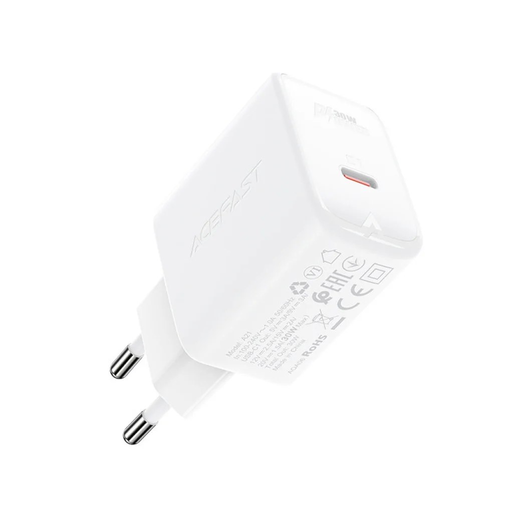 Acefast A21 GaN fali töltő USB Type C 30W PD QC 3.0 AFC FCP fehér
