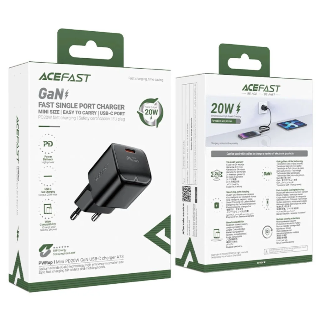 Acefast A73 Mini PD 20W GaN USB-C hálózati töltő - fekete