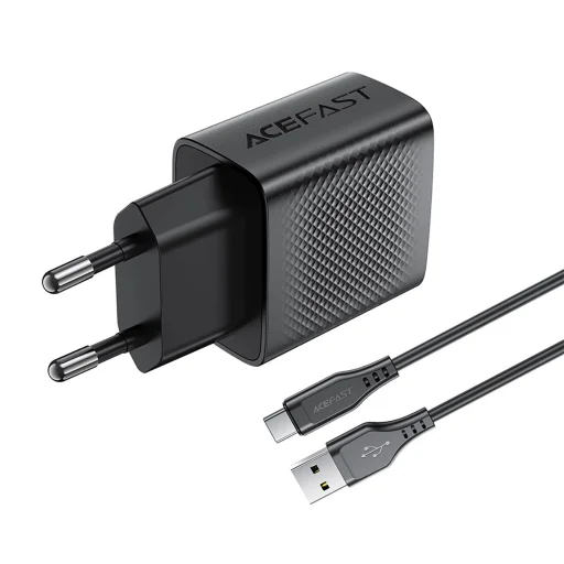 GaN Acefast A90 fali töltő USB-A porttal, akár 18W teljesítménnyel - fekete (USB-A / USB-C kábel mellékelve) Az Acefast A90 GaN fali töltő nemcsak helyet takarít meg, hanem nagyobb hatékonyságot is kínál. A GaN technológiának köszönhetően a töltő kisebb, könnyebb és hatékonyabb, ami ideális választássá teszi a kényelmet előnyben részesítők számára. Az intelligens chip több szintű védelmet nyújt, garantálva a biztonságos töltést széles eszközkínálathoz: az okostelefonoktól a táblagépekig. A csomag tartalmaz egy USB-A / USB-C kábelt, amely lehetővé teszi az azonnali használatot.