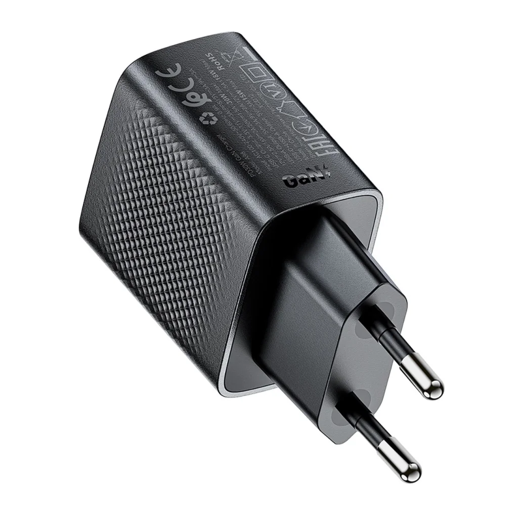 Az Acefast A98 GaN hálózati töltő USB-A és USB-C portokkal rendelkezik, akár 30W teljesítménnyel és Power Delivery támogatással - fekete. Az Acefast A98 hálózati töltő kompakt méretének, alacsonyabb üzemi hőmérsékletének és magasabb energiahatékonyságának köszönhetően előnyös a fejlett GaN technológiának. A töltő támogatja a gyors töltést akár 30W teljesítménnyel, így ideális okostelefonok, táblagépek, vezeték nélküli hangszórók és TWS fülhallgatók számára. A töltő intelligens chippel van felszerelve, amely többféle védelemmel biztosítja minden eszköz biztonságos töltését.