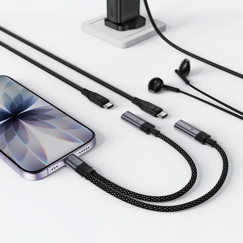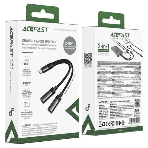 Ne válasszon többé a zenehallgatás és az okostelefon töltése között! Az Acefast J14 adapter elegáns és praktikus megoldást nyújt, ha egyszerre szeretné élvezni kedvenc dallamait és maximális sebességgel tölteni USB-C csatlakozós eszközét. Ez a prémium kivitelű, fekete elosztó valódi „Plug & Play” kiegészítő, amely azonnal, mindenféle szoftveres telepítés nélkül használható.