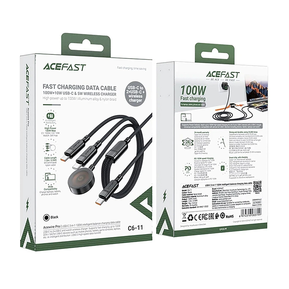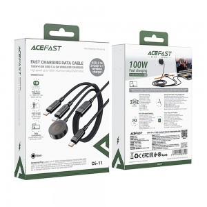 Termék leírás Acefast - Adatkábel (C6-11) - Gyors töltés, 2x Type-C, Vezeték nélküli töltő USB-C-hez, 3 az 1-ben, 100W, 5A, 5W, 480Mb/s, 1.2m - Fekete