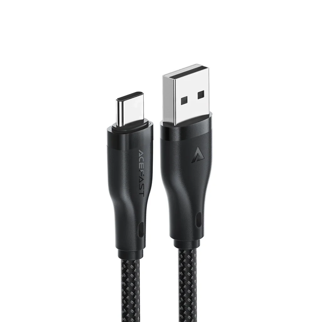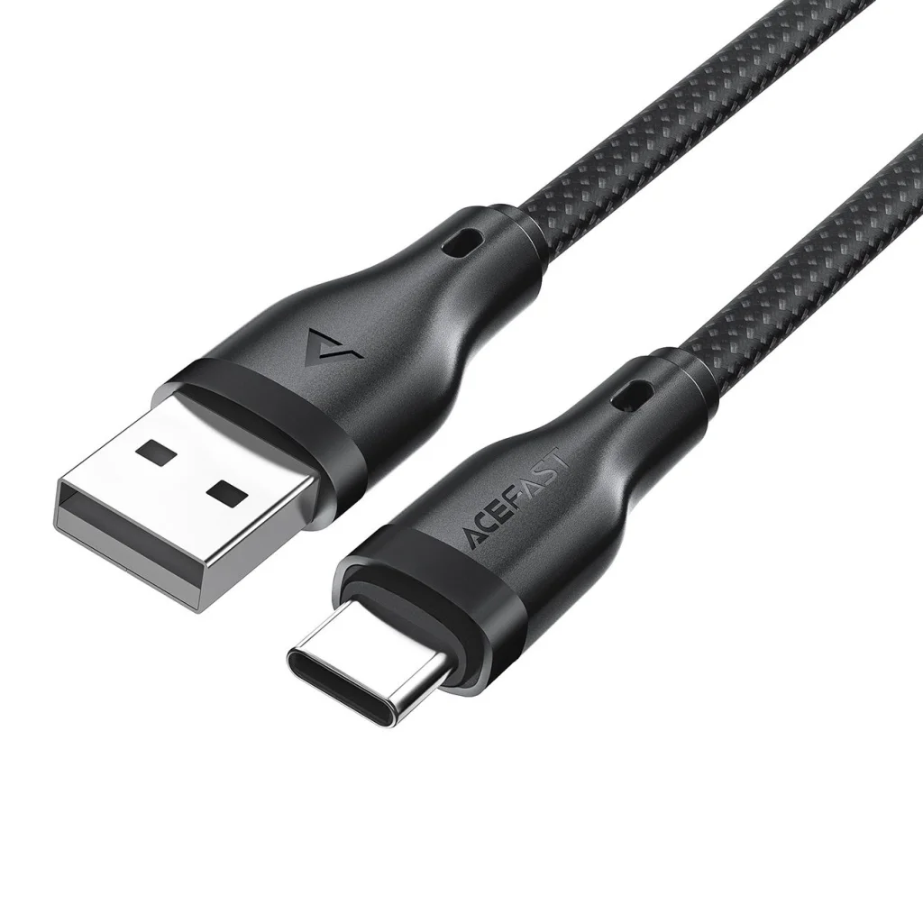 Acefast C8-04 kábel USB-A / USB-C csatlakozókkal 3A - Fekete Az Acefast C8-04 kábel kifogástalan tartósságával és megbízhatóságával fog meglepni, amely a mindennapi elektronikai eszközök használatát még könnyebbé teszi. Az erős nejlonfonatnak és alumínium csatlakozóinak köszönhetően készen áll minden kihívásra. A legfeljebb 3A gyors töltést támogató és gyors adatátvitelt biztosító Acefast C8-04 számos eszközhöz tökéletes. 25 000 hajlítási teszten esett át, ami kivételes tartósságát igazolja. Ideális választás otthoni, irodai és utazási használatra.