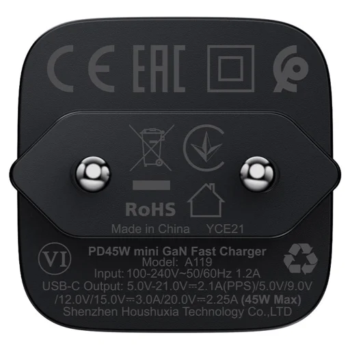 - Villámgyors PD45W töltés: Egyetlen USB-C portjával akár 45W teljesítményt is képes leadni, ami elegendő okostelefonok, tabletek és a legtöbb modern laptop gyors és hatékony feltöltéséhez. Támogatja a Power Delivery (PD) szabványt.