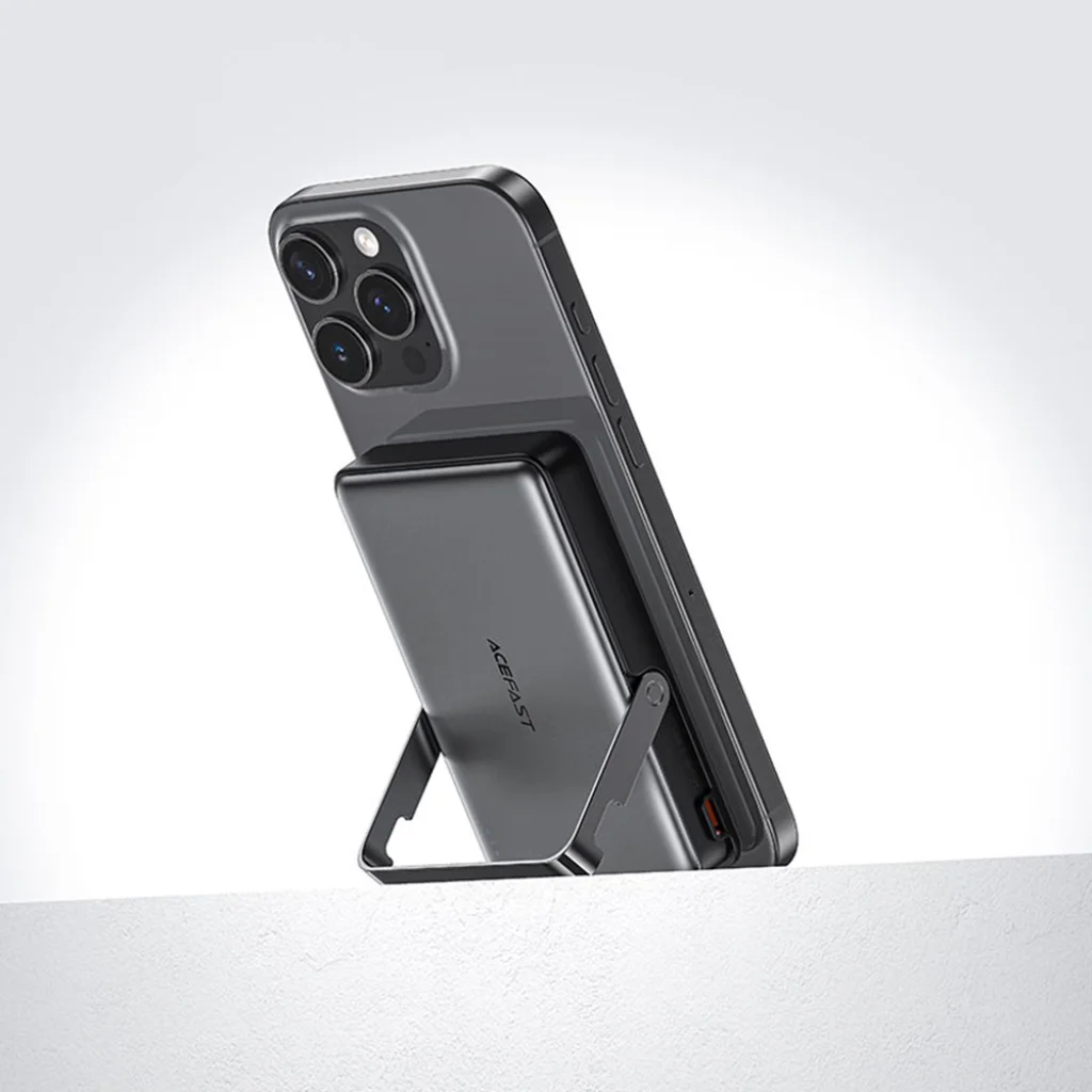 Az Acefast M17-10000 egy rendkívül sokoldalú és nagy teljesítményű mágneses vezeték nélküli power bank, amely nem csupán gyors töltést biztosít készülékeinek, hanem beépített, összecsukható állványának köszönhetően kényelmes médiafogyasztást is lehetővé tesz. Elegáns fekete színben és ultravékony kialakításban érkezik, hogy tökéletesen illeszkedjen mindennapi használatához.