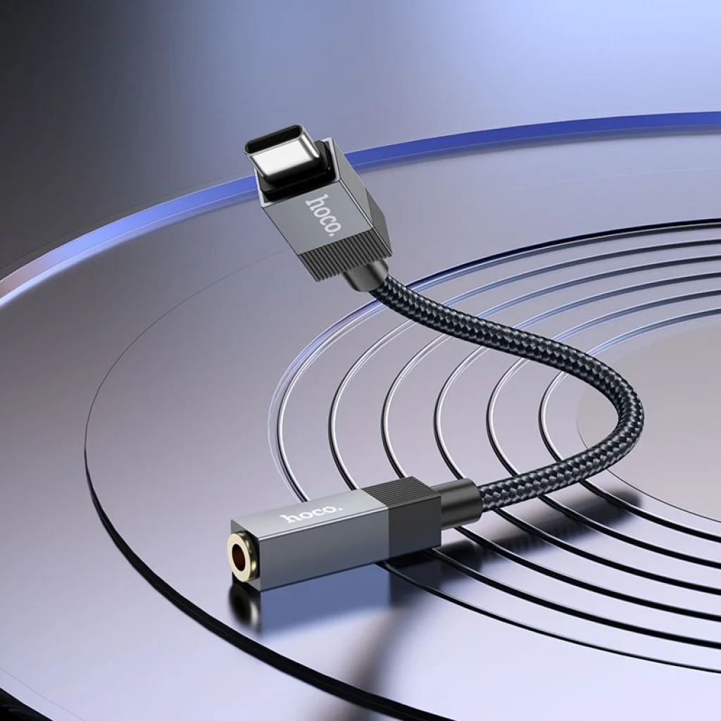 Hoco adapter kábellel USB-C-től Mini Jack 3,5 mm-es fejhallgató-csatlakozóig. Lehetővé teszi, hogy a fejhallgatót csatlakoztassa okostelefonjához. Gyakorlati megoldás csak USB-C porttal rendelkező eszközök számára. Könnyű, kis méretű és rendkívül tartós, az adapter csak néhány grammos, és kis méretének köszönhetően könnyen szállítható. Tartós, rugalmas anyagból készült kábel növeli az adapter hatótávolságát és manőverezhetőségét. Hang a legmagasabb szinten! Mind zenehallgatáskor, mind fejhallgatóval való beszélgetésnél - a hang tiszta és interferencia mentes. Mikrofon támogatás - az adapter támogatja a mikrofonos fejhallgatókat vagy mikrofont. A tok eltávolítása nélkül - az kiegészítő kialakításának köszönhetően a tok eltávolítása nélkül is csatlakoztatható a telefonhoz. Specifikáció: