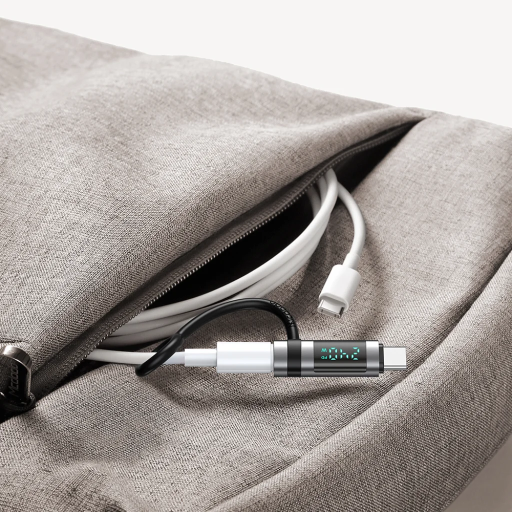 - Valós idejű digitális kijelző: Az adapter beépített képernyőjén azonnal láthatja az aktuális töltési teljesítményt (W) és a PD állapotot, így mindig tisztában lehet eszköze energiafelvételével.