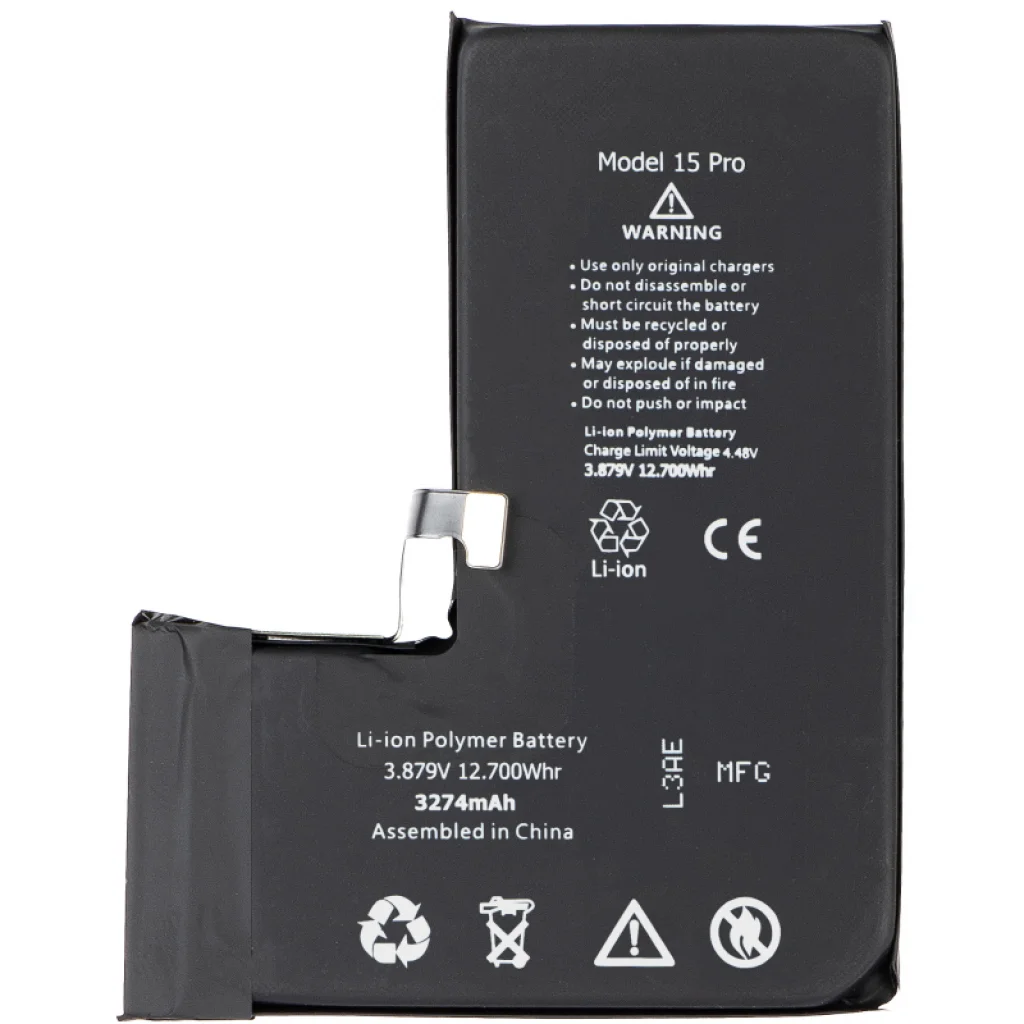 Ez az utángyártott akkumulátor kifejezetten az Apple iPhone 15 Pro-hoz készült cserealkatrész. 3274mAh kapacitásával megbízható energiát biztosít, hogy készüléke egész nap működjön. Tökéletes választás azoknak, akik szeretnék kicserélni az eredeti akkumulátorukat, vagy tartalékot szeretnének. Ez az akkumulátor biztosítja az optimális teljesítményt és hosszú élettartamot. Tartsa iPhone-ját feltöltve és üzemkész állapotban ezzel a megbízható csere akkumulátorral.