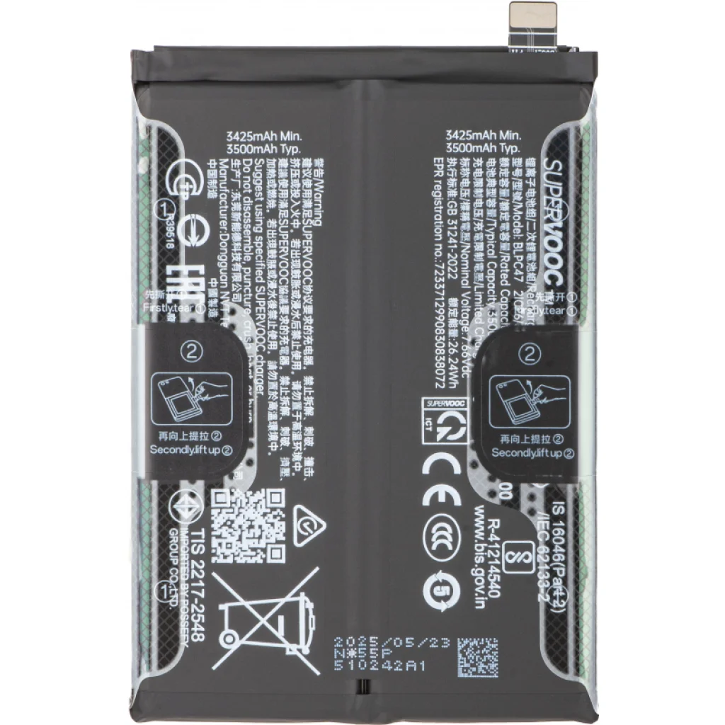 Az Akkumulátor BLPC47 Realme GT 7T / GT 7 készülékekhez egy pótló alkatrész a Realme licencelésével, amelyet a telefon sérült akkumulátorának cseréjére használnak. Cseréld le a régi akkumulátort, és szereld fel a telefonodat egy új, eredeti akkumulátorral, amely a szükséges energiát biztosítja.