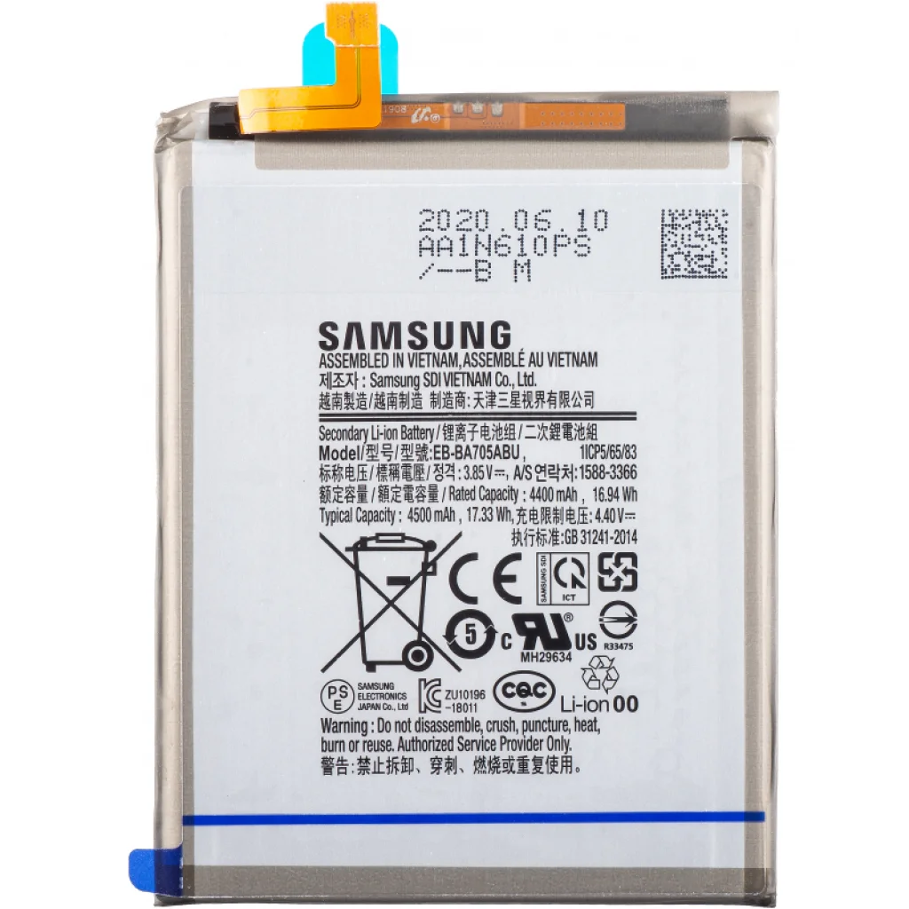 Samsug akkumulátor EB-BA705ABU Samsung Galaxy A70 A705 készülékhez (GH82-19746A). Az akkumulátor a Samsung licensze alatt készült, cserélhető a hibás vagy sérült akkumulátorral a telefonján. Kompatibilis modellek: Samsung Galaxy A70 / A70 Dual SIM