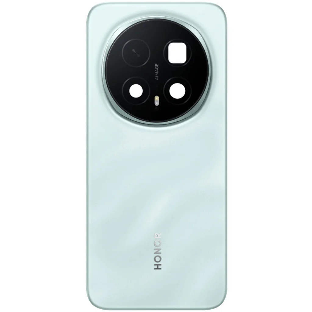 Akkumulátor hátlap Honor Magic8 Pro-hoz - Sky Cyan. Tartalék alkatrész Honor licenc alapján, amelyet a telefon sérült hátlapjának cseréjére használnak. Tartalmaz ragasztót és kameravédő lencsét.