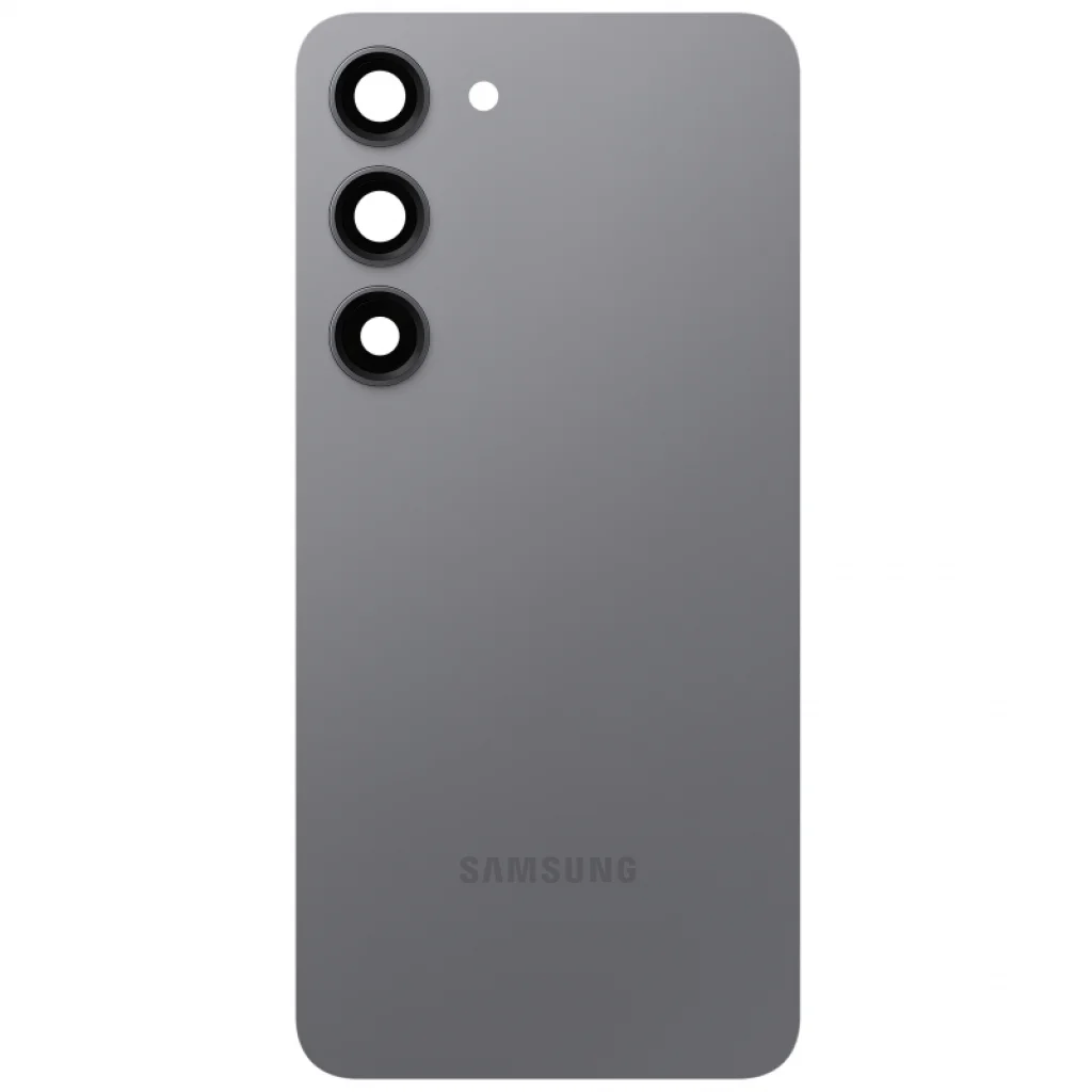 Akkumulátor hátlap GH82-30393C Samsung Galaxy S23 S911 - Grafit. Ez egy Samsung licenc alatti pótalkatrész, amely a telefon sérült részének cseréjére használható. A csomag tartalmaz ragasztót és kameravédő üveget.