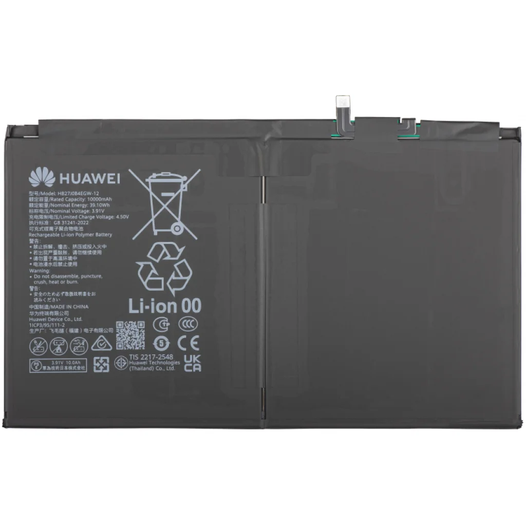 Akkumulátor Huawei MatePad 12 X (2025)-höz. Eredeti alkatrész Huawei licenc alapján, amelyet a sérült akkumulátor cseréjére használhat a táblagépén. Cserélje ki a régi akkumulátorát, és szerelje fel a táblagépét egy új, eredeti akkumulátorral, amely biztosítja számára a szükséges energiát.