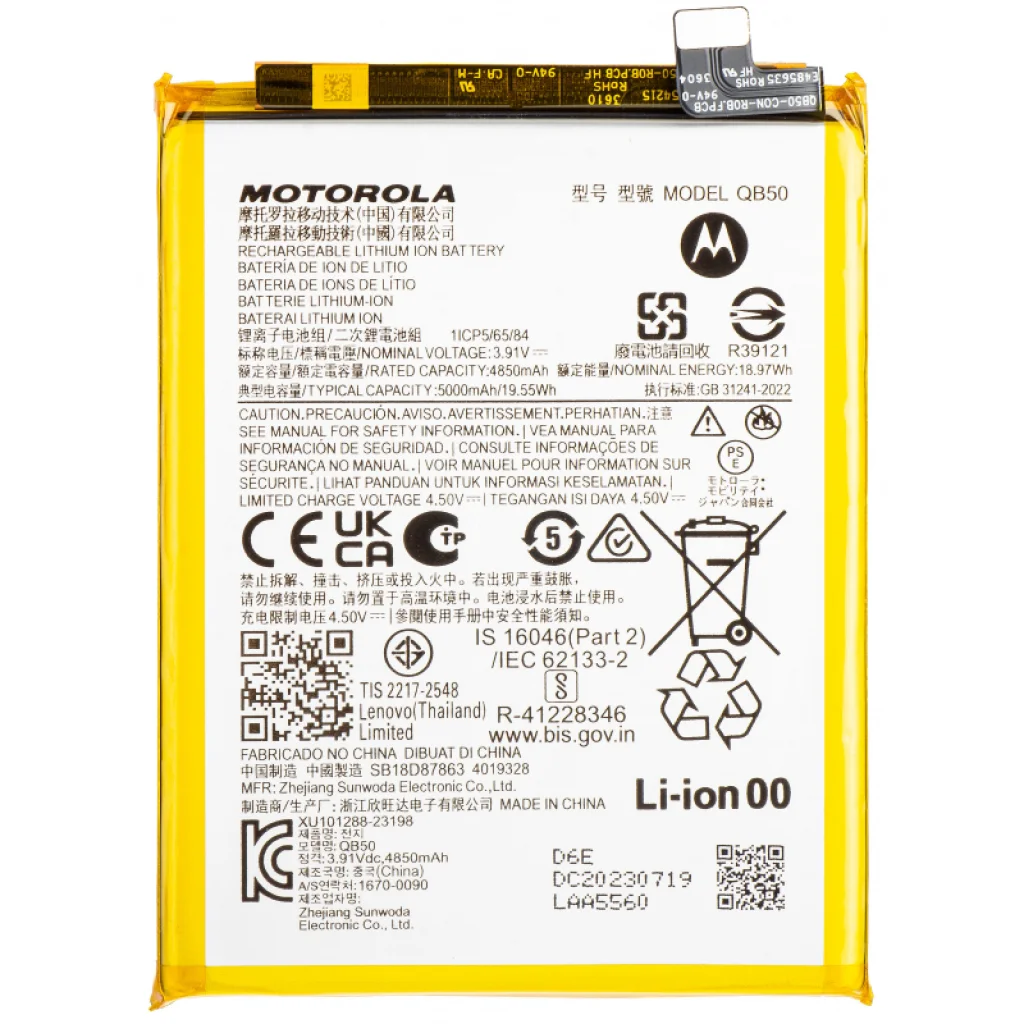 Li-Ion-Polymer akkumulátor QB50, 4850mAh kapacitással, Motorola Moto G84 XT2347-1 MOTO G84 5G (2023), XT2347-2 MOTO G84 5G (2023) készülékekhez - eredeti szervizalkatrész.