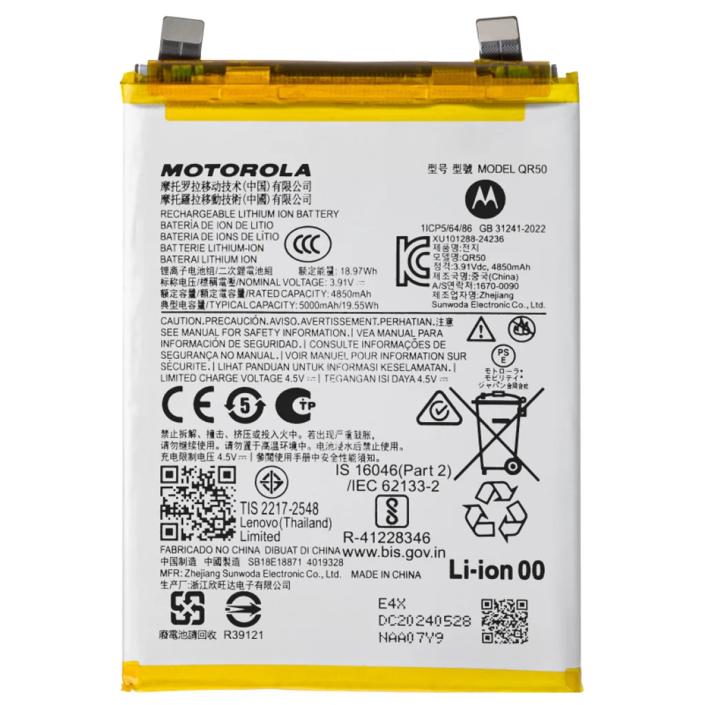 Az akkumulátor QR50 a Motorola Edge 50-hez licencelt pótalkatrész, amelyet a telefonon sérült akkumulátor cseréjéhez használnak. Cserélje le a régi akkumulátort, és lássa el telefonját egy új, eredeti akkumulátorral, amely biztosítja a szükséges energiát.