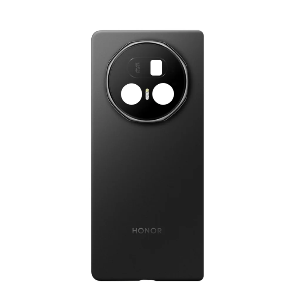Akkumulátorfedél Honor Magic V5 - Fekete. Pótalkatrész Honor licenc alatt, mely a telefon sérült alkatrészének cseréjére szolgál. Tartalmazza a ragasztót és a kameravédő lencsét.