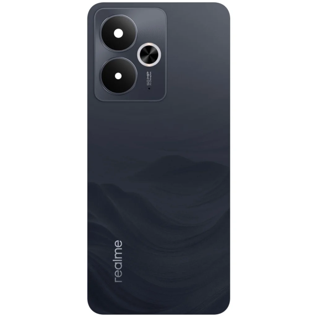 Akkumulátorfedél Realme 14T készülékhez - Obsidian Black. Realme licenc alatt készült pótalkatrész, amely a telefon sérült részének cseréjére szolgál. Tartalmazza a ragasztót.