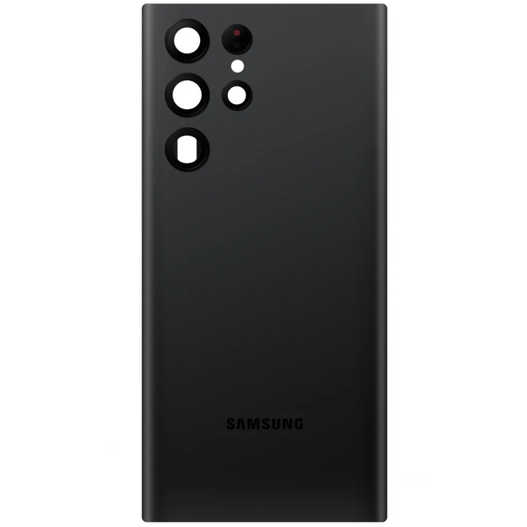 Akkumulátorfedél Samsung Galaxy S22 Ultra 5G S908 - Fantom Fekete (GH82-27457A) Cserealkatrész Samsung licenc alatt, amelyet a sérült alkatrész cseréjére használnak a telefonon. Tartalmazza a ragasztót és a kamerát üveggel.