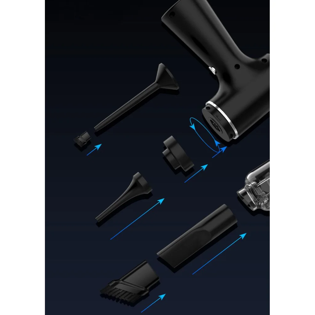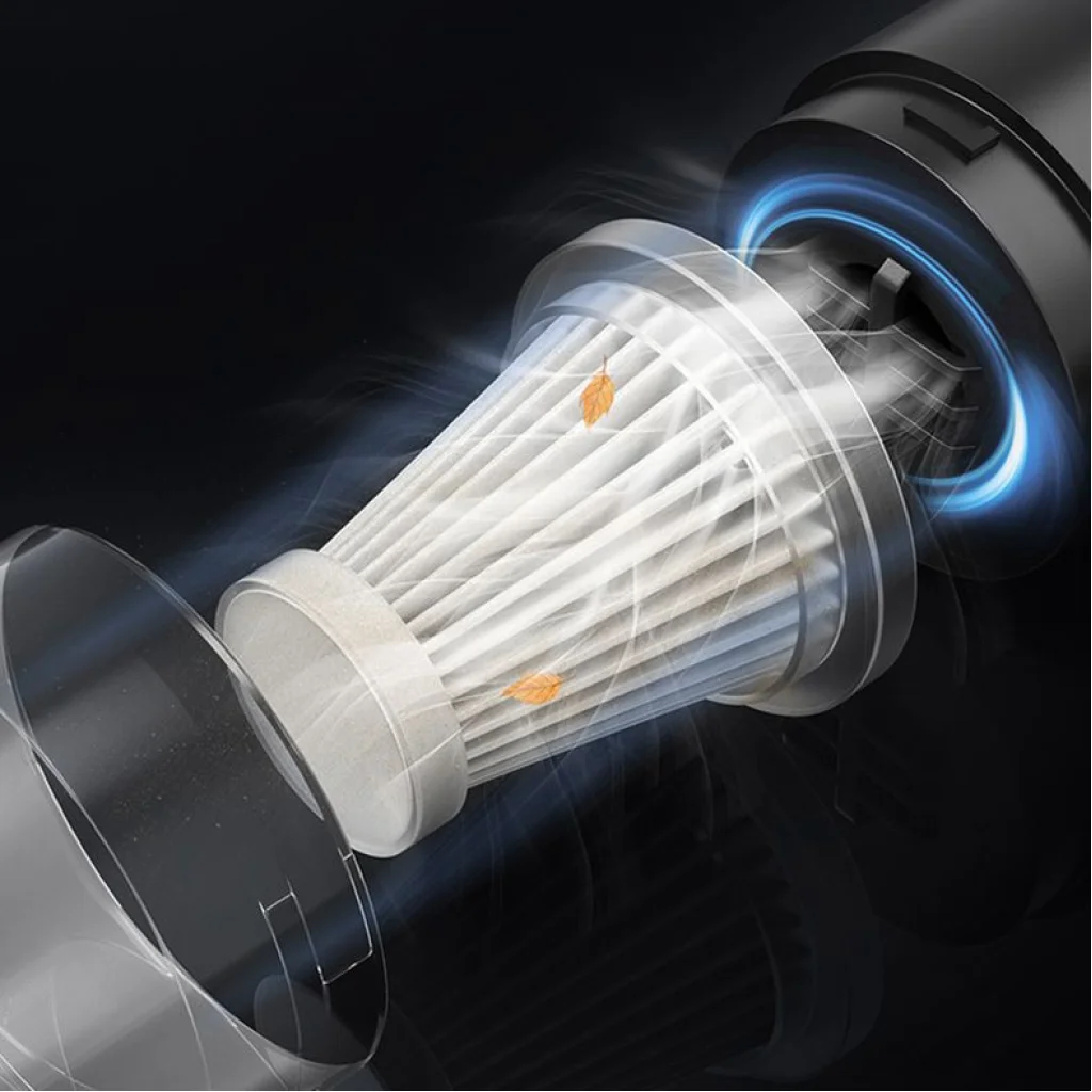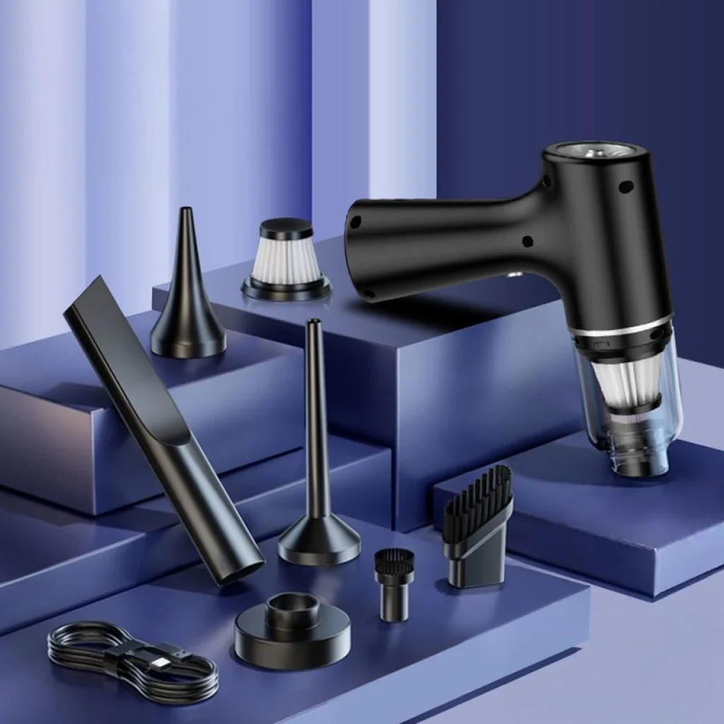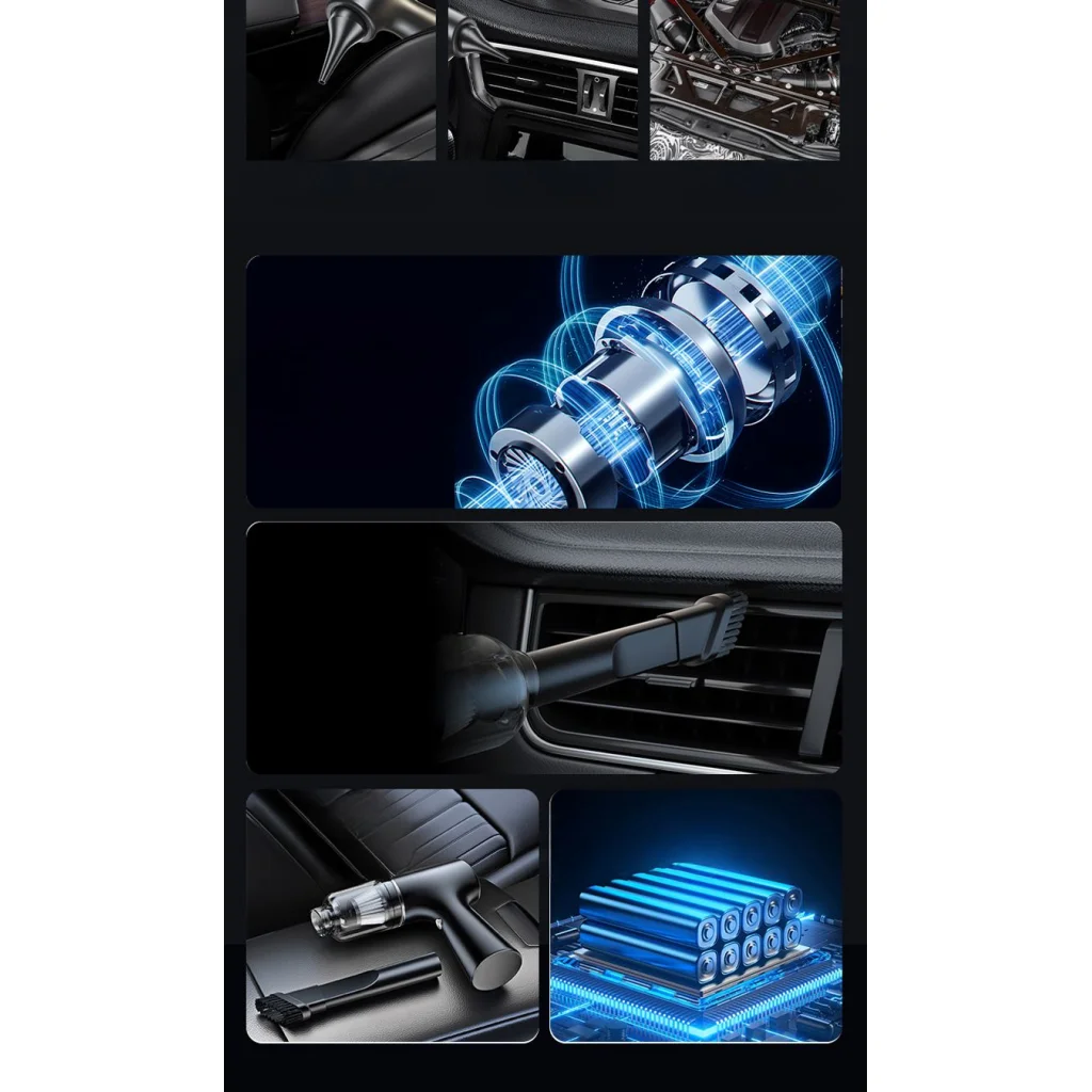Ez a megbízható készülék különféle tartozékokkal alaposan tisztítja a jármű belsejét, minden apró résbe és zugba bejutva. Praktikus, könnyű és lehetővé teszi a szennyeződések gyors eltávolítását. A vezeték nélküli porszívó (03 modell) golyósmotorral erős készülék 5000-6000 Pa szívóerővel, ideális por és szennyeződés eltávolítására különféle felületekről. A dupla 2000 mAh-s akkumulátorokkal mintegy 20 perc folyamatos használatot biztosít egyetlen töltéssel. A töltési idő körülbelül 4 óra, és kompakt méretei (21,5 × 18 × 6,1 cm) és könnyű kialakítása (517 g) kényelmes használatot és tárolást tesznek lehetővé.