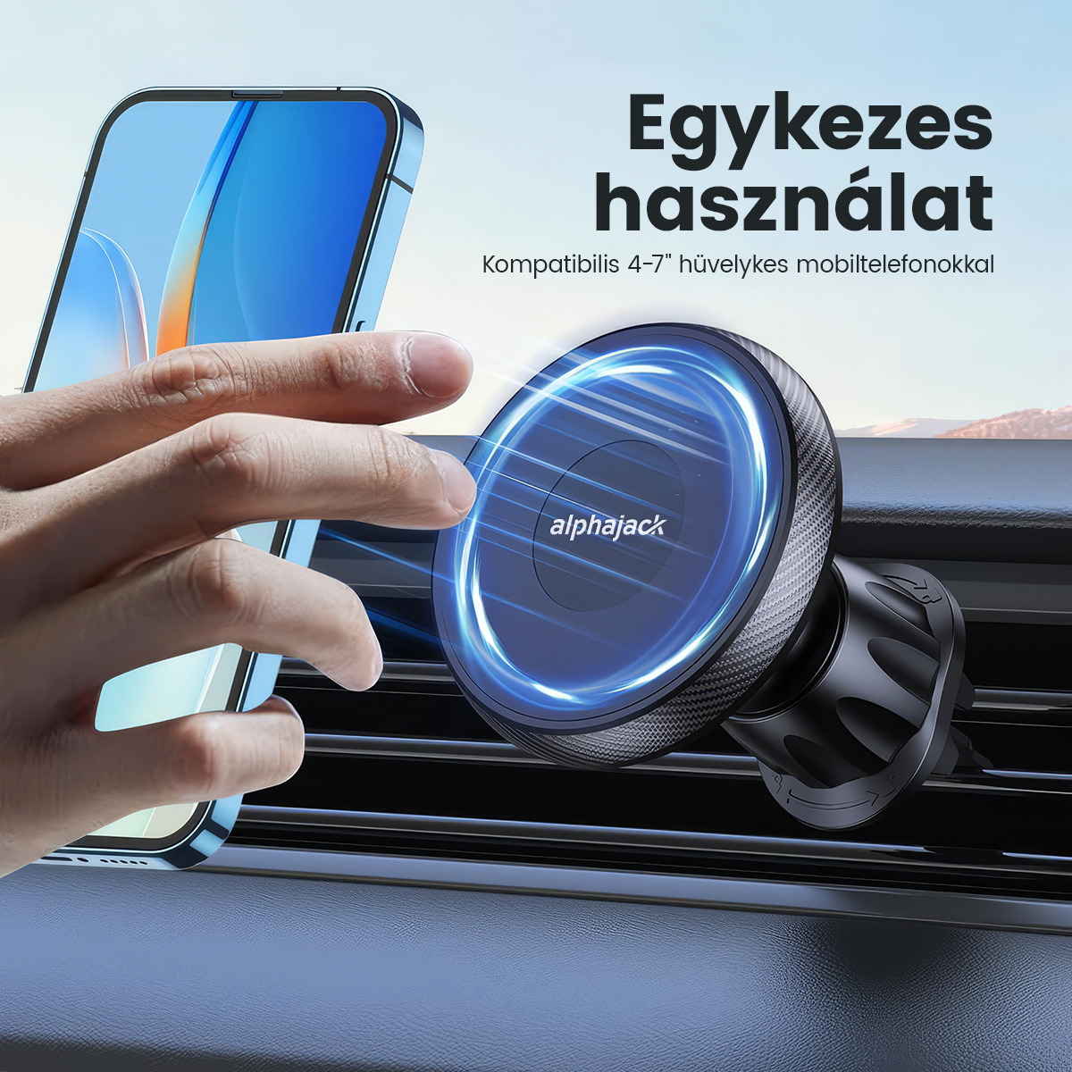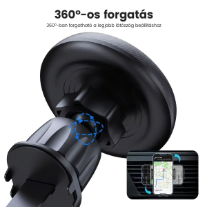- Egykezes kezelés: A mágneses kialakításnak köszönhetően a telefon egy kézzel, pillanatok alatt rögzíthető vagy levehető, így a figyelme az úton maradhat, és biztonságosabbá válik a vezetés.
