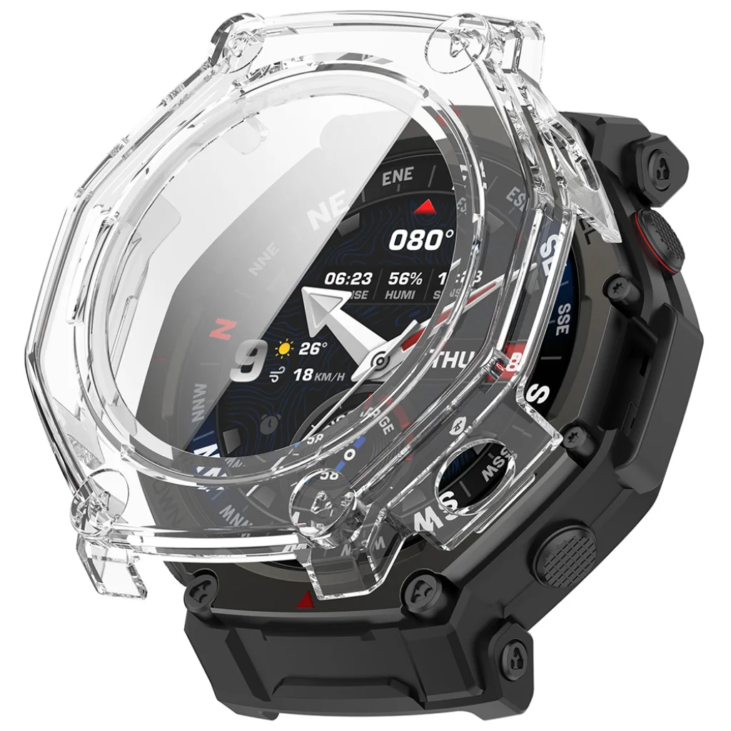 - Kristálytiszta átlátszóság: A magas minőségű, átlátszó anyag lehetővé teszi, hogy az Amazfit T-Rex 3 Pro eredeti színe és egyedi, masszív designja teljes mértékben érvényesüljön, így nem kell kompromisszumot kötnöd a védelem és a stílus között.