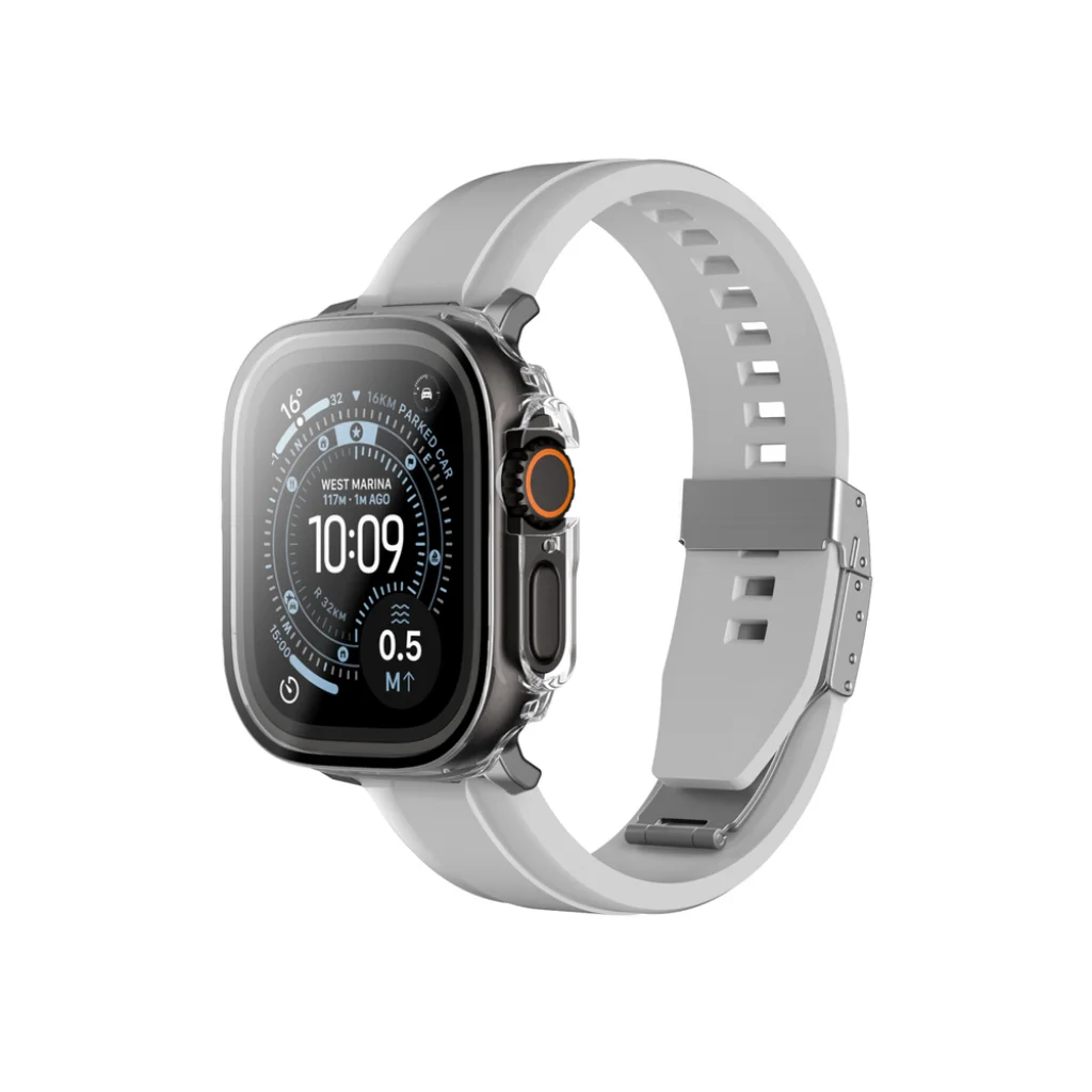 Fejlett FullGuard védelem: Az átlátszó keret az edzett üveggel kombinálva hatékony védelmet nyújt az ütések és karcolások ellen, megvédve az órát a mindennapi használat során. Tartós 9H üveg: A 9H keménység megvédi a karcolásoktól, melyeket kulcsok, készülék élek vagy véletlen ütések okozhatnak. Természetes érintési érzékenység: Az ultra-vékony bevonat sima és precíz válaszadást biztosít, a komfort csorbítása nélkül. Foltmentes védelem: Az oleofób bevonat csökkenti az ujjlenyomatokat, így a képernyő és az üveg hosszabb ideig tiszta marad. Kompatibilitás az Apple kiegészítőkkel: A tok nem zavarja a töltést vagy a gombok működését, teljesen funkcionális marad az Apple Watch Ultra 3-mal.