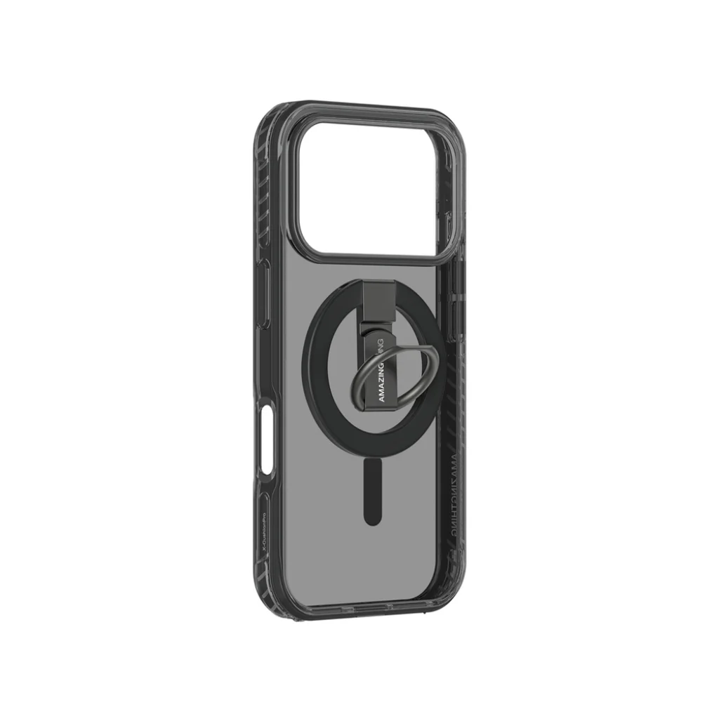 AmazingThing Titan Pro Grip Ring Set tok iPhone 17 Pro Max-hoz - Fekete Az AmazingThing Titan Pro Grip Ring Set tok hatékony védelmet és funkcionalitást ötvöz. Az X-CUSHION PRO 7 technológia elnyeli a sokkot és szétoszlatja az ütés energiáját, növelve a telefon biztonságát. A 3,6 méteres ejtésvédelem magabiztosságot nyújt a mindennapi használat során. Az állítható és levehető mágneses gyűrű állványként is funkcionál, amely lehetővé teszi, hogy a telefont kényelmesen különböző szögekbe helyezze. A tok német, foltálló anyaggal van bevonva, amely hosszabb ideig megőrzi vonzó megjelenését.