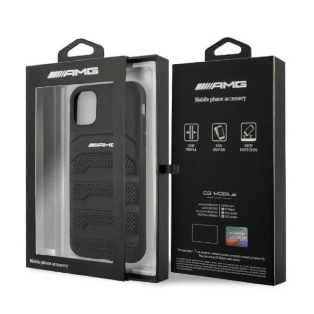 Az AMG logóval ellátott bőr tok klasszikus és elegáns megjelenést biztosít, és garantálja telefonja biztonságát. Az exkluzív Mercedes-AMG kemény tok polikarbonát és valódi bőr kombinációjából készült, a szélei rugalmas TPU anyagból vannak, mely könnyű telepítést biztosít.
