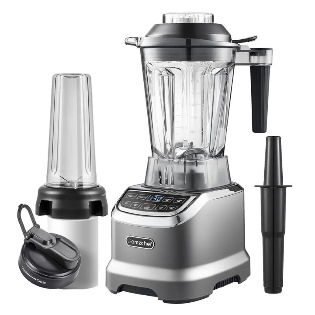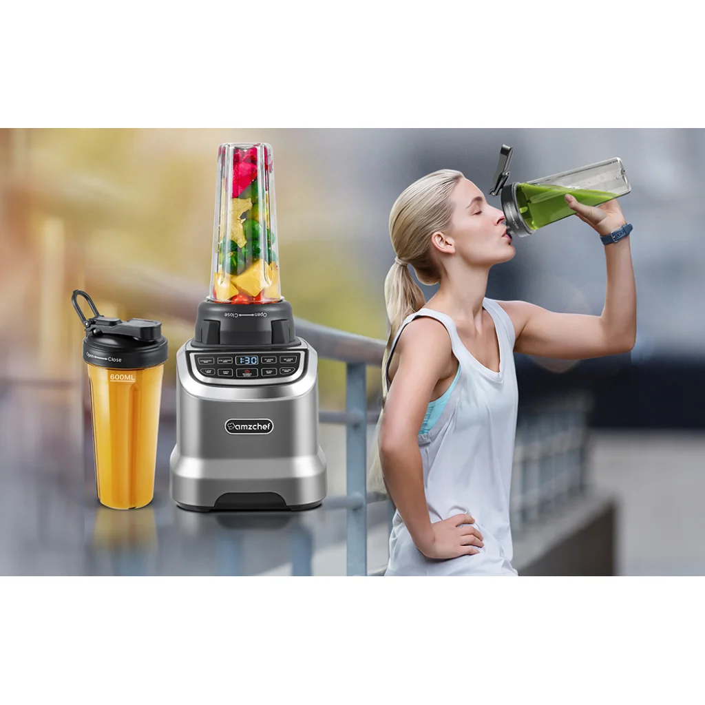 Az AMZCHEF ZM5003-GA csészés turmixgép lenyűgöző, akár 1800 wattos teljesítményt és 1,85 literes űrtartalmat kínál, a pengék pedig akár 26 000 fordulat/perc sebességgel működnek. Ez megkönnyíti a különféle ételek és italok elkészítését - a turmixoktól és turmixoktól a krémlevesekig. Sikeresen őrölheti a gabonákat vagy a húst is. Egy további 600 ml-es palackkal az otthonon kívül is élvezheti a finom italokat.