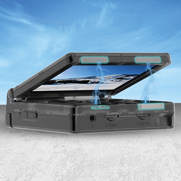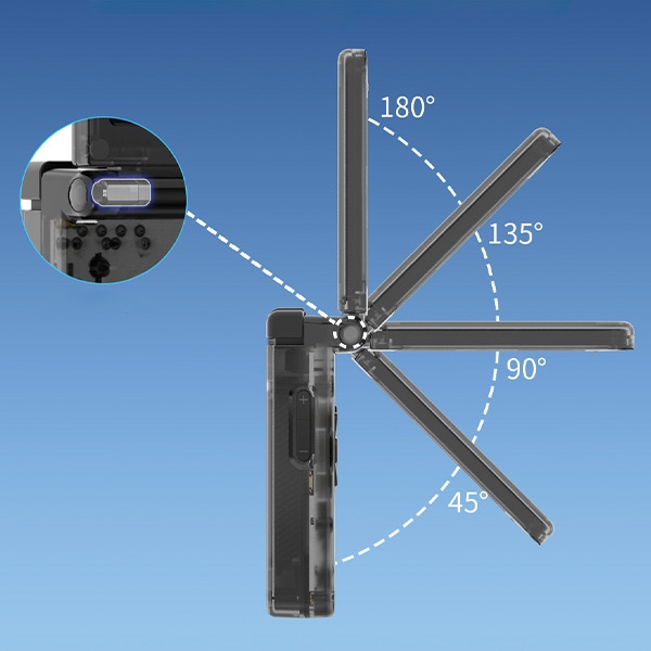 A beépített Hall-effekt kapcsoló automatikusan felébreszti a konzolt, amikor kinyitod, és alvó állapotba helyezi, amikor bezárod.