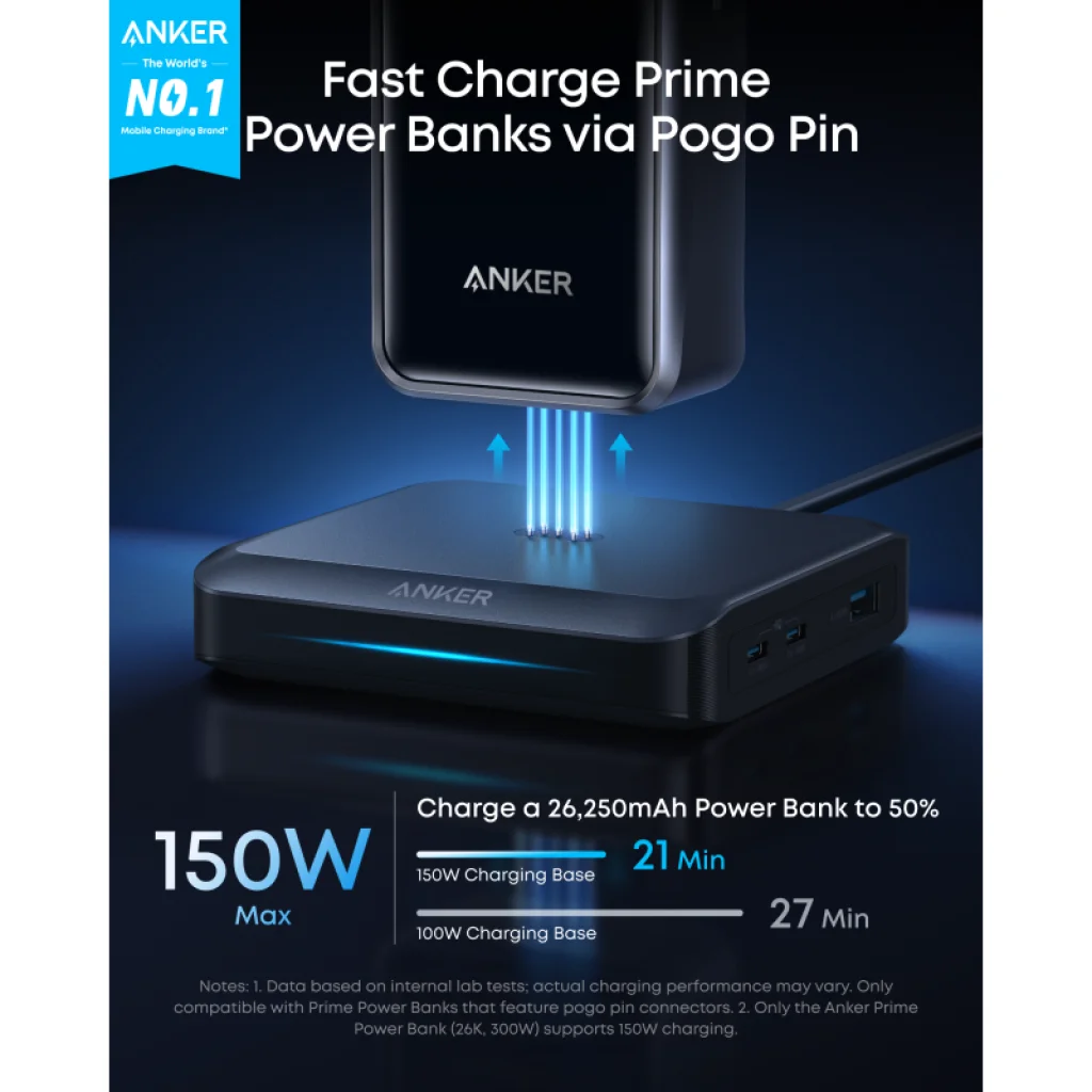Anker Asztali Töltő Powerbank Prime, 150W, 5A, 1 x Pogo Pin - 1 x USB-A - 2 x USB-C, Fekete A1903G11
