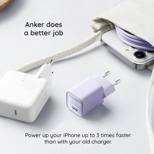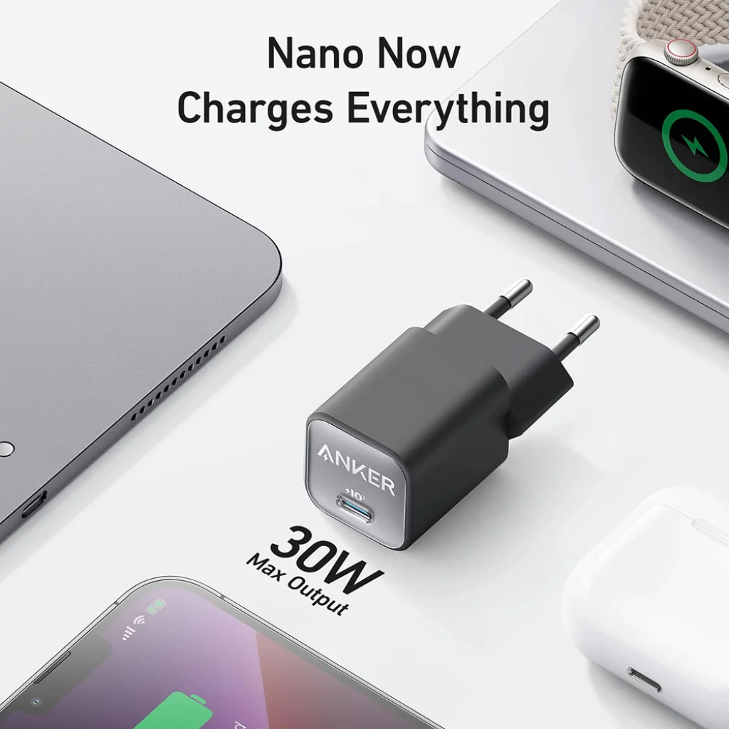Az Anker 511 Nano 3 töltő a GaN (Gallium-nitrid) technológiát alkalmazza, amely lehetővé teszi, hogy egy rendkívül kis méretű adapterben akár 30W maximális teljesítményt biztosítson. Ez a fejlett anyag segít csökkenteni a töltő méretét anélkül, hogy a teljesítményből engedne, így egy „mini töltőn” keresztül is hatalmas erőt kaphat.