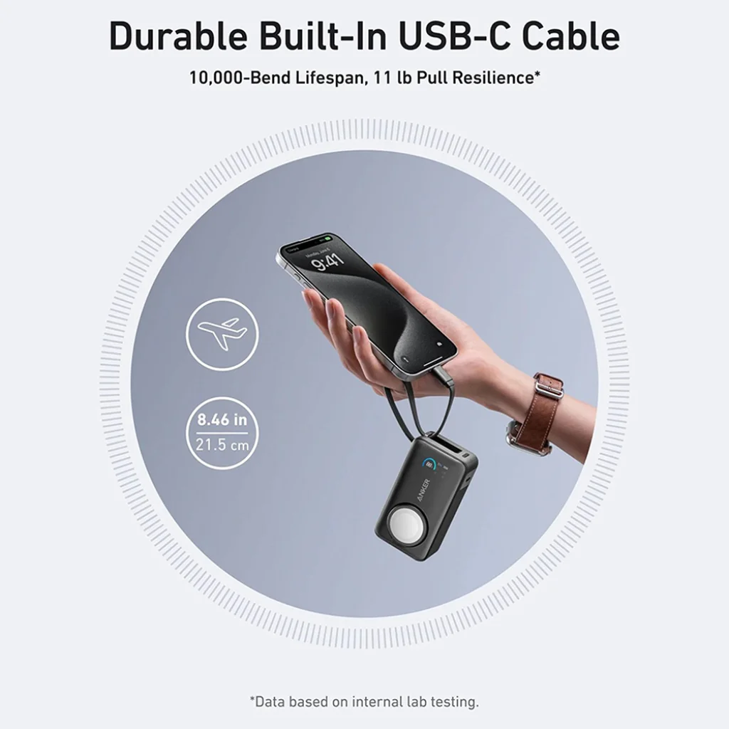 - Mindig kéznél: Az integrált 21.5 cm (8.46 hüvelyk) hosszú USB-C kábel biztosítja, hogy soha ne maradj töltőkábel nélkül.