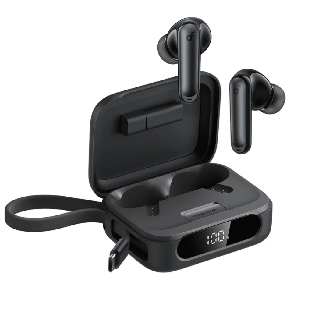 Az Anker Soundcore P41i töltőtokja nem csupán a fejhallgatók tárolására és töltésére szolgál. Egyedi és praktikus kiegészítője egy beépített telefontartó, amely automatikusan rögzül a tokban, ha az lezárul, így kényelmesen nézhet videókat vagy böngészhet anélkül, hogy telefont kellene tartania. Sőt, a tok rejt egy még meglepőbb funkciót: mini power bankként is használható, melynek segítségével vészhelyzetben feltöltheti okostelefonját! Kompatibilis készülékek esetén, mint például az iPhone 16 Pro (50%), iPhone 14 Pro (55%), Galaxy S24 (45%) vagy Google Pixel 8 (40%) akkumulátorát töltheti fel részben a tokkal a beépített USB-C kimeneten keresztül.